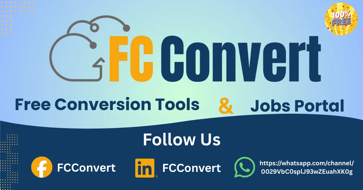 FCConvert is a free online file conversion platform developed and maintained by Powerwebsols. It is designed to help users convert files quickly, securely, and without the need to install any software.